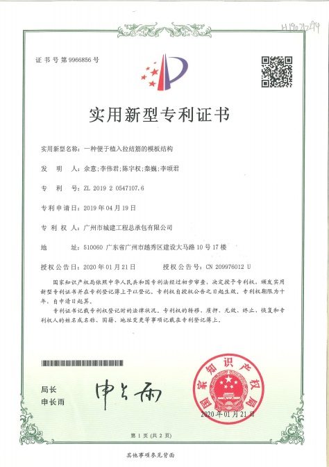 该模板结构能能够节省开孔工序,降低植入拉结筋的难度,节省人力物力,提高施工效率。